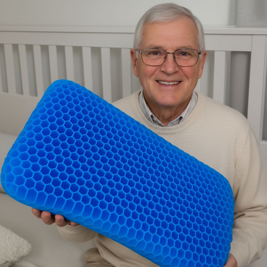 El GelConfort Pro está diseñado de forma diferente. La tecnología de gel reactivo distribuye la presión uniformemente por toda tu superficie de asiento, mientras que la estructura de panal de abeja previene la acumulación de calor que causa molestias. La formulación avanzada de gel mantiene su estructura de soporte, **manteniendo tu columna vertebral alineada naturalmente.**